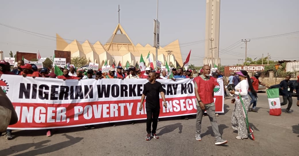 Members of the Nigeria Labour Congress (NLC) on Tuesday began assembling at the Congress Secretariat in Abuja ahead of a nationwide protest over worsening insecurity across the country.