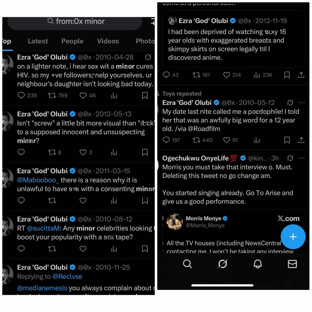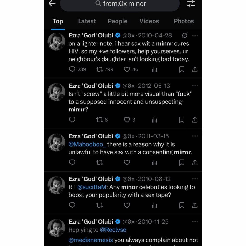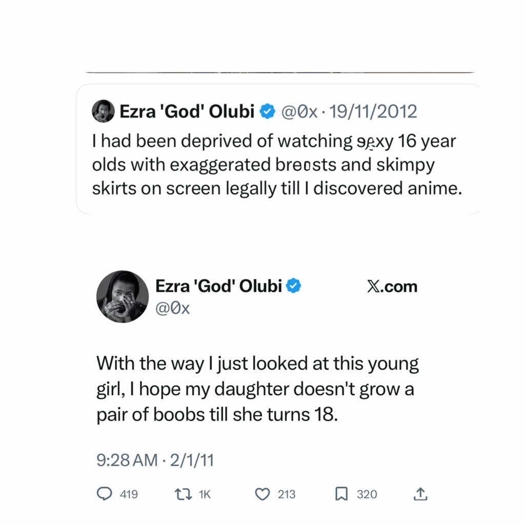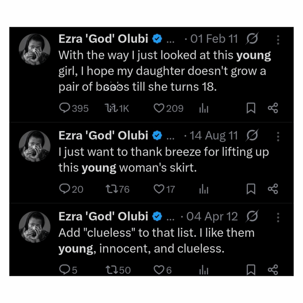 The tweets contain highly unsettling comments reportedly referencing min0rs, alongside other remarks widely condemned by users as inappropriate and pa3d0philic in tone. Although the posts are believed to be more than a decade old, their circulation has revived debates about accountability, digital footprints, and the expectations placed on prominent public figures.